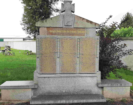 Denkmal für die Gefallenen des 1. Weltkriegs auf dem Friedhof hinter der Kirche.