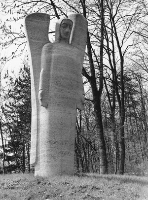 besteht aus einem Todesengel, der von 16 Steinen umringt ist, auf denen die Namen aller gefallenen und vermissten Soldaten der