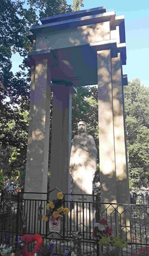 im Nordosten der Stadt. Trauernde Frauenfigur mit einem Tempel als Überdachung. Ehemals inmitten einer Kriegsgräberstätte