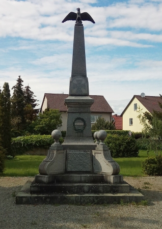 Obelisk, mit einem Adler als oberen Abschluss, auf einem abgestuften Sockel, in dessen Seitenflächen die Teilnehmer am Feldzug eingeschlagen sind. Am Fuß des Obelisken ziert die Vorderseite ein Tatzenkreuz. Auf dem Mittelteil ist vorne das Relief eines Lorbeerkranzes, der eine kleine Tafel mit den Jahreszahlen 1870-71 umschließt. Die goldene Fassung der Namen ist nur noch an wenigen Stellen erhalten.