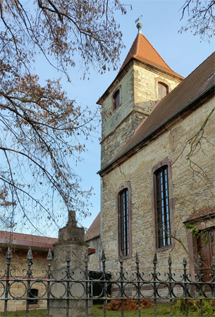 Denkmal mit krönendem Tatzenkreuz für den 1. Weltkrieg vor der Kirche St. Nikolaus.