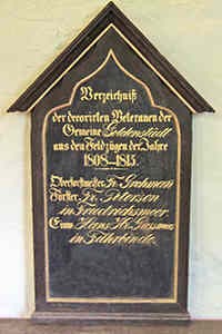 Gedenktafel in der Kirche, früher an der Nordwand, jetzt an der Kanzel von 1731.