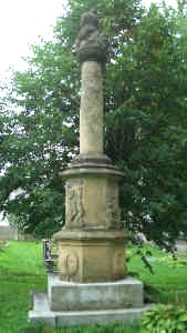 Das aus Sandstein gefertigte Denkmal steht am Eingang des alten Friedhofs.