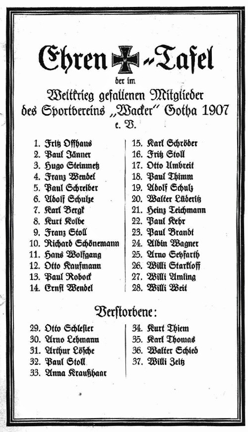 Weltkrieg gefallenen Mitglieder
