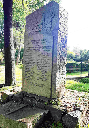 Denkmal für die Gefallenen des 1. Weltkriegs an der Dorfstraße nördlich der Kirche.
