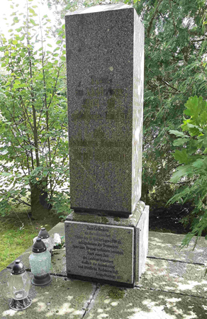 Denkmal für die Gefallenen des 1. Weltkriegs. Großflächiger Sockel mit schmaler viereckiger Stele.