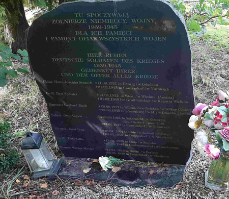 Kriegsgräberstätte des 2. Weltkriegs mit schwarzem Granit-Namensstein.