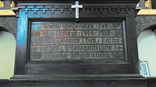 Im unteren Teil des Altars wurden die Namen der Gefallenen angebracht.