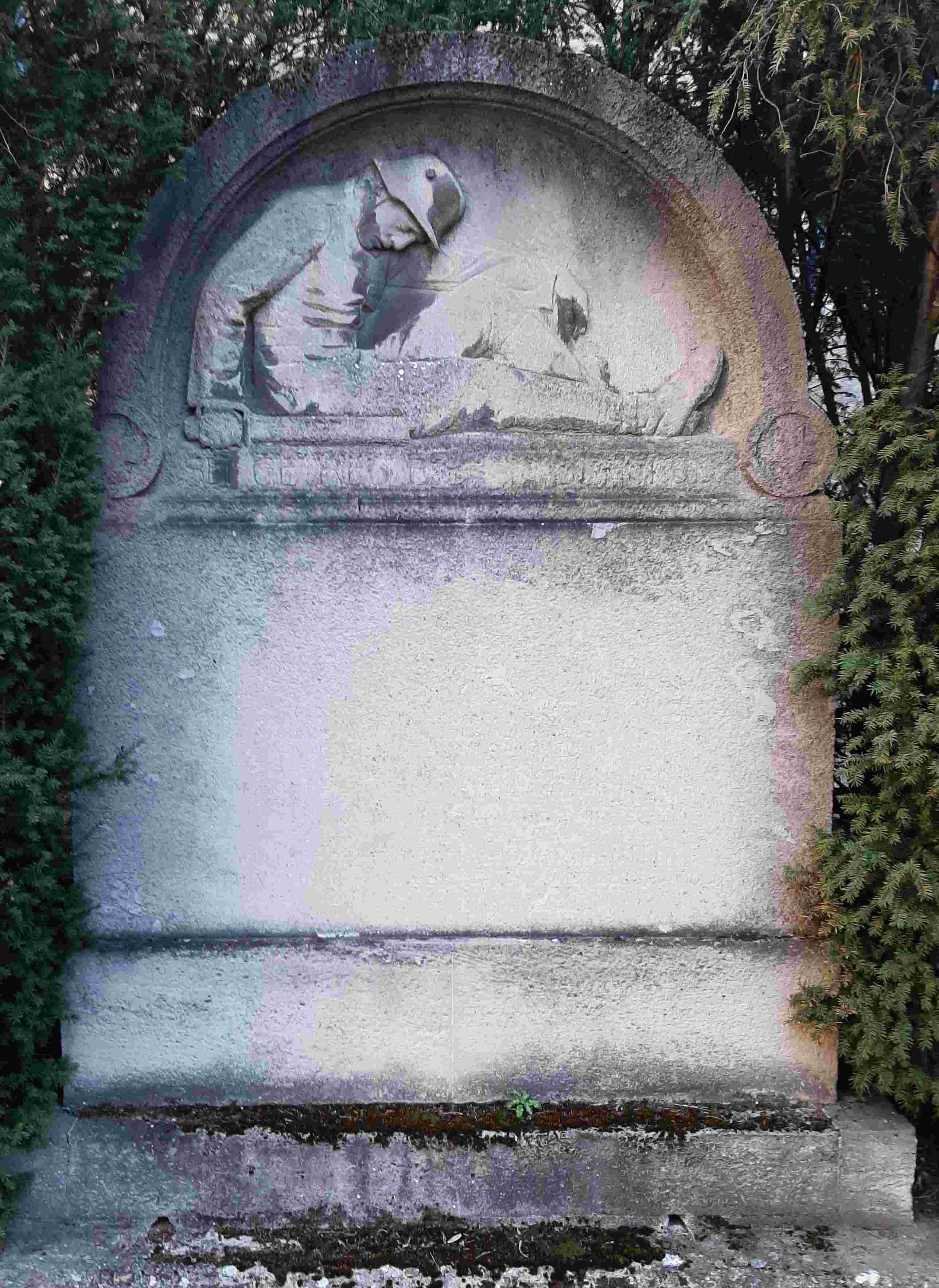 sterbenden Soldaten mit Schwert und Stahlhelm eingearbeitet ist. Die Inschriften sind fast ganz verwittert.