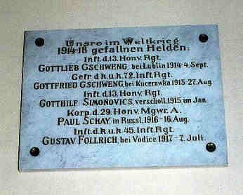 Gedenktafel für Gefallene des Ersten Weltkrieges.