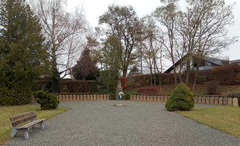 In der Spitze des „Keils“ das Denkmal für die Gefallenen des 1. Weltkrieges., bestehend aus einem Obelisken auf Postament.