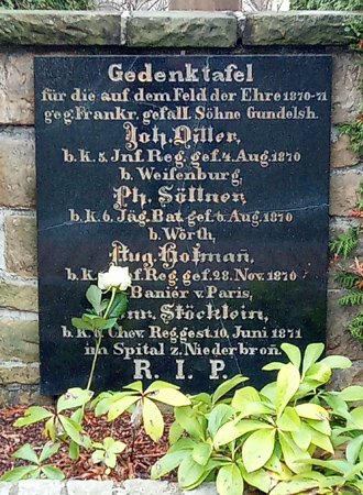An einer Mauer zwischen den beiden Zugangstreppen zum Denkmal befindet sich eine Gedenktafel mit den Gefallenen des Krieges 1870-71.