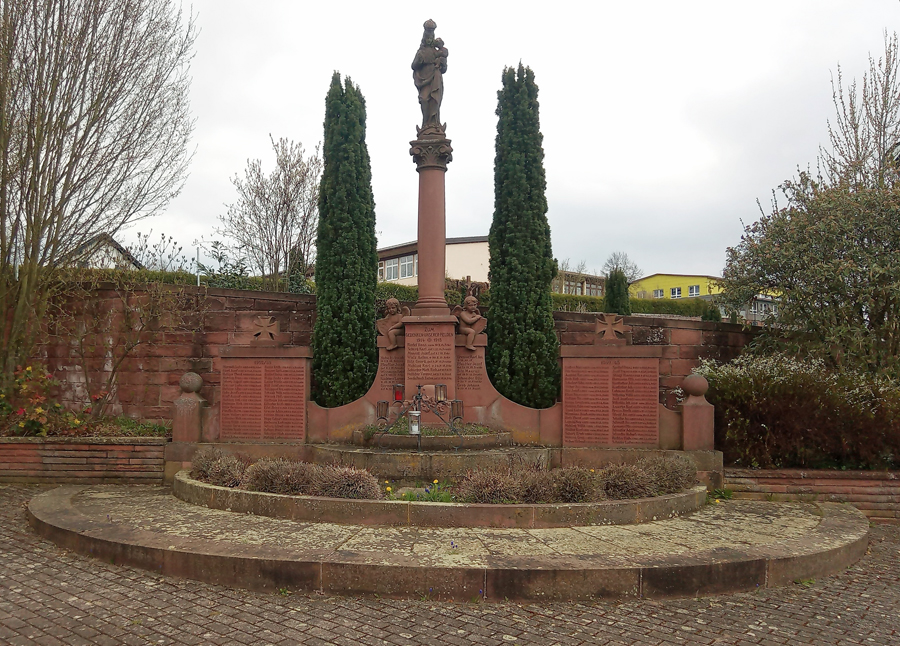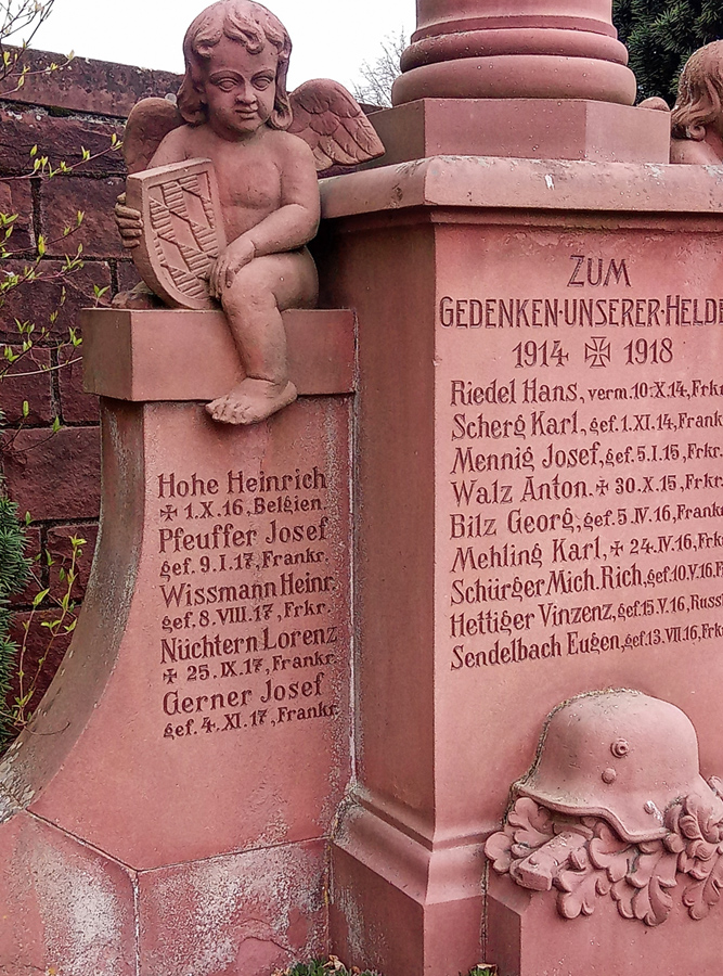 Neben der Kirche St. Jakobus, am Zugang zum Friedhof, befindet sich das Kriegerdenkmal aus Sandstein.