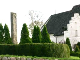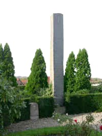 Auf dem Kirchhof von Hagenberg eine hohe Granitstele mit Inschrift.
