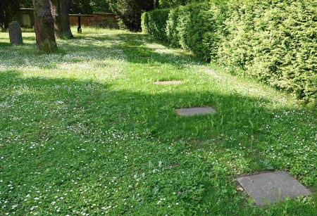 Liegeplatz der einzelnen Platten ist symbolisch. Die genaue Grablage der einzelnen Toten ist nicht mehr bekannt (es existiert auch