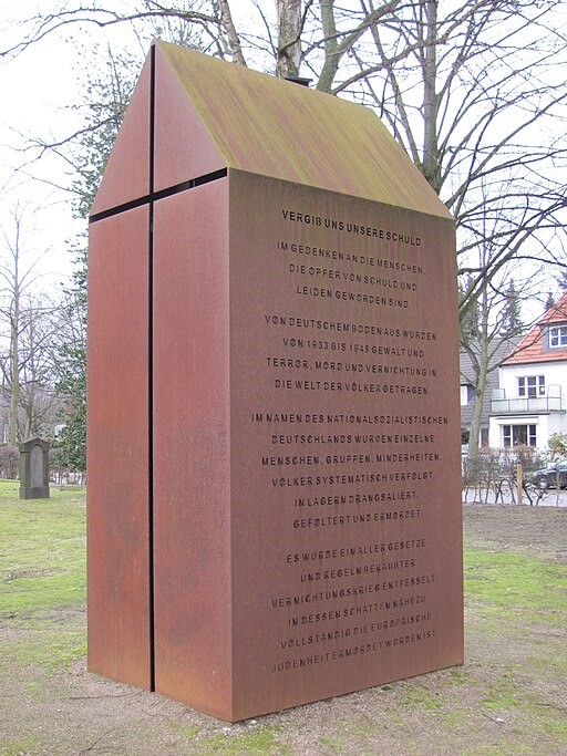 Mahnmal-Inschrift: Vergib uns unsere Schuld
