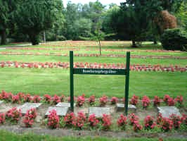 Gräberfeld mit Schild „Bombenopfergräber".