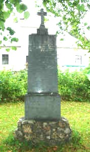Das Denkmal aus Granit steht auf dem Vorplatz der Kirche zwischen zwei großen alte Linden.