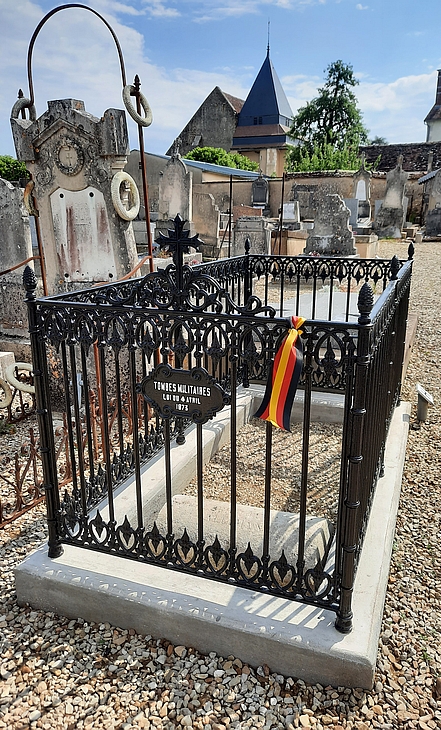 Auf dem Plan von 1876 (Quelle: französisches Militärarchiv) ist es unter Nummer 4 als „deutsches Grab” verzeichnet.