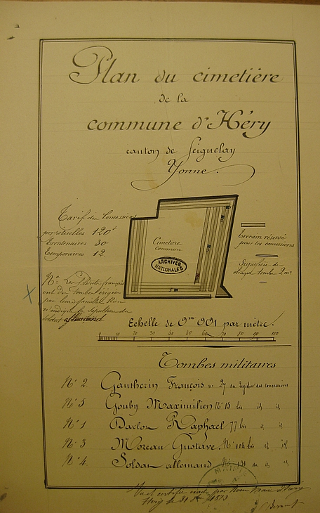 Auf dem Gemeindefriedhof von Héry befindet sich diese Grabstätte eines unbekannten deutschen Soldaten, der während des Deutsch-Französischen Krieges 1870-1871 in Héry gefallen ist. Das Grab ist umrandet von einem gusseisernen Gitter mit der Inschrift „Militärgräber Gesetz vom 4. April 1873” *1