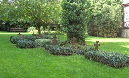 Im Ehrenfeld Kriegsgräber vom Zweiten Weltkrieg.