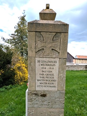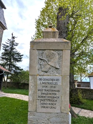 Im Jahre 1923 entstand zu Ehren der Gefallenen des Ersten Weltkrieges das Kriegerdenkmal an der Nordseite der Kirche St. Ulrich im Ort. Eine einfache Stele, die nach unten leicht konisch gearbeitet ist und unten auf einer flachen Platte steht. Den oberen Abschluss bildet ein Eisernes Kreuz, das voll aus Kalkstein gearbeitet ist. Es ruht auf einem kleinen Sockel oberhalb der Stele. Diese trägt im oberen Teil Basreliefs. Sie zeigen auf der Vorderseite zwei nach unten gerichtete gekreuzte Schwerter. Darunter die Inschriften. Die Seiten zeigen an dieser Stelle einen Kriegerkopf mit Stahlhelm bzw. auf der Gegenseite ein Eisernes Kreuz. Auf der Rückseite sind eine Sichel und eine Ährengarbe dargestellt. Mit der Zeit verwitterte der Kalkstein immer mehr, so dass die ursprüngliche Beschriftung kaum noch lesbar war. Deshalb machte sich eine grundlegende Sanierung notwendig, gleichzeitig sollte dazu eine Gedenktafel für die gefallenen Hochdorfer des Zweiten Weltkrieges entstehen. Um diese zwei Aufgaben zu lösen, bildete sich eine Interessengruppe unter der Leitung von Sven Hauspurg. Diese bereitete die Rekonstruktion des Kriegerdenkmals vor, die Arbeiten wurden von der Firma Seifarth aus Teichel durchgeführt. Auf diesem Wege (des Beitrages im Amtsblatt) wurde allen freiwilligen Spendern recht herzlich Dank gesagt, denn nur dadurch kam die Summe für die Sanierung zusammen. Die feierliche Einweihung des restaurierten Denkmals fand am Sonntag, dem 04.09.2011 vor Ort statt. gez. Interessengruppe Kriegerdenkmal Hochdorf.