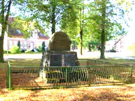 Ein Findling in der Ortsmitte auf gemauertem Feldsteinsockel. Auf dem Stein eine Inschrift, darunter zwei Namenstafeln.