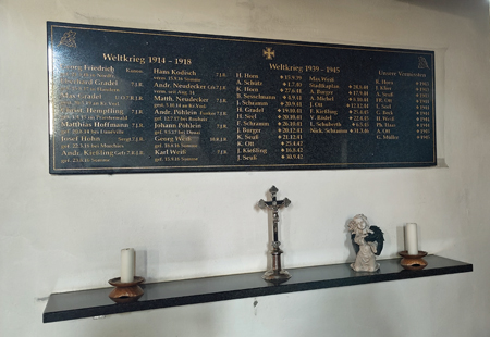 Gedenktafel aus Stein in der römisch-katholischen Filialkirche St. Josef.
