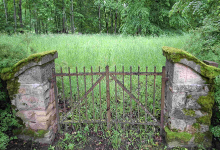 Die Fläche des Friedhofs ist noch vorhanden aber leer und verwildert.