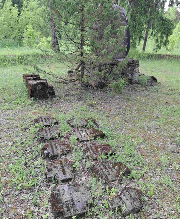 Die Grabkreuze wurden alle zerschlagen und nach 1990 nur noch Reste davon vorgefunden. Diese sind heute