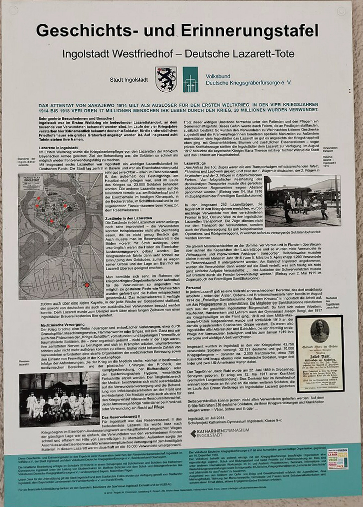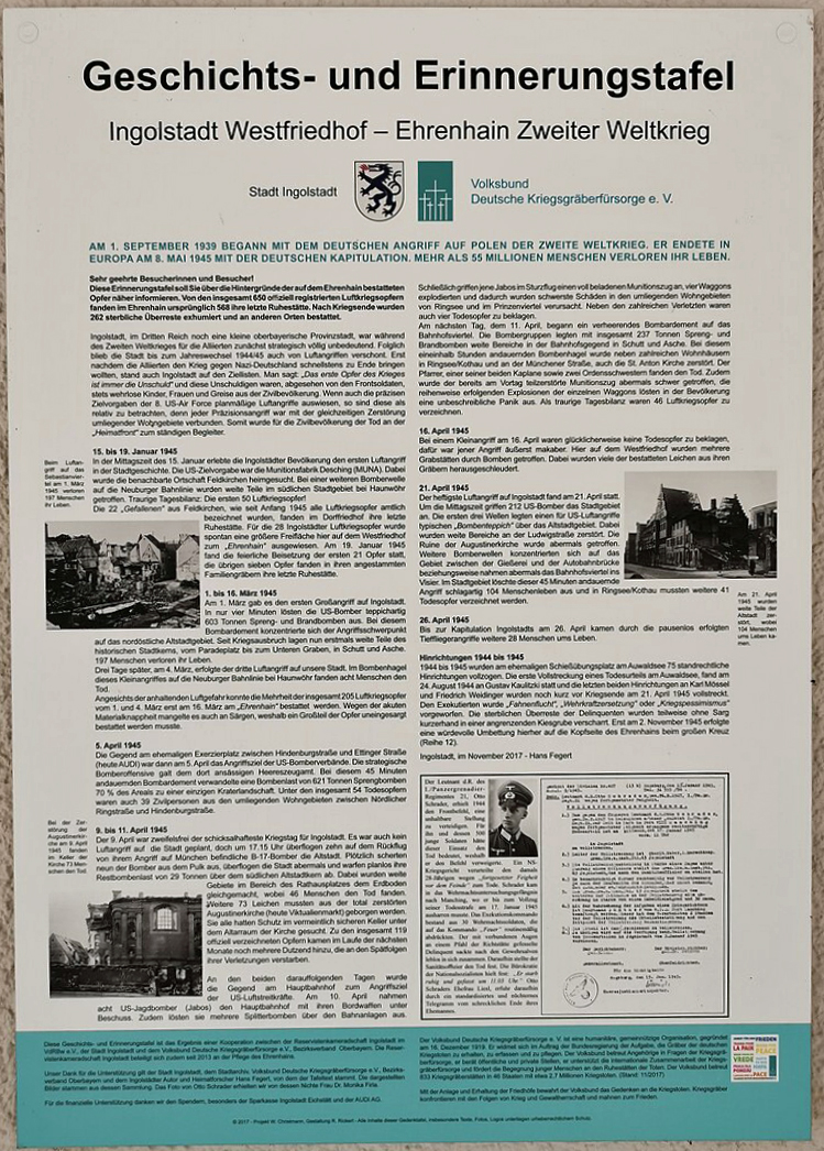 Foto © 2024 Wikimedia: Wikitarisch, Category:Geschichts-_und_Erinnerungstafeln_Westfriedhof_(Ingolstadt),