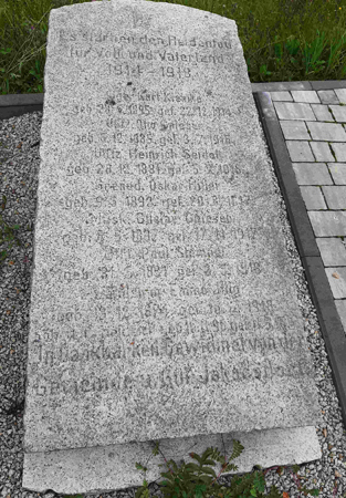 Rest eines Denkmals für die Gefallenen des 1. Weltkriegs in der Dorfmitte.