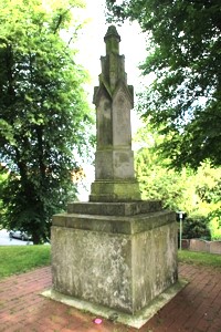 Auf dem Sockel (ca. einen Meter hoch, quaderförmig) steht eine sechseckige kirchturmförmige Säule. In jedem Feld befindet sich eine Inschrift.