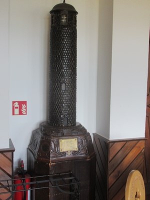 Im Gastraum, dem Rempter, der Fuchsturmgaststätte befindet sich ein altertümlicher Ofen.