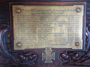 An diesem wurde eine Gedenktafel aus Messing für die gefallenen Mitglieder der Fuchsturmgesellschaft sowie der