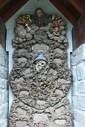 Zwischen den Verzierungen befinden sich Namensplättchen.