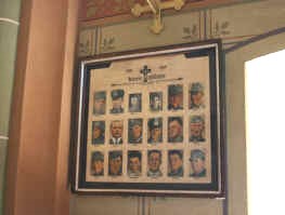 In der Kirche Tafel mit Namen und Fotos der Gefallenen (Zweiter Weltkrieg).