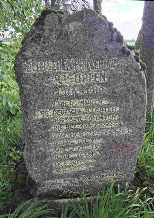 Kriegsgräberstätte für Gefallene des 1. Weltkriegs nordwestlich des Ortes am Rande von Feldern.