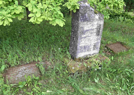 am Zaun entlang zum Denkmal. Es war im Jahre 2025 ungepflegt, die Namensplatten mit Moos