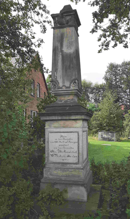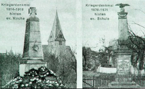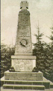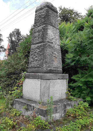 Nahe am Pfarrhaus ein verzierter Obelisk, den früher ein Adler krönte, für die Gefallenen der Kriege 1866 und 1870/71.