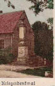 Nahe an der Kirche ein schlichter Obelisk mit Stahlhelm-Relief für die Gefallenen des 1. Weltkriegs,