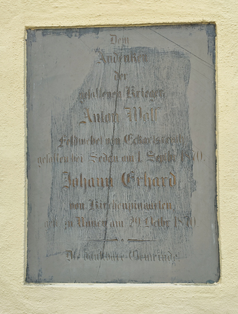 Kirchhofs, im Kirchhof Gedenktafel für den Feldzug 1870/71.