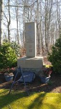Gedenkstätte (Obelisk): Auf der Vorderseite Inschrift Erster Weltkrieg, Rückseite Gefallene Erster Weltkrieg. Linke und rechte Seite Gefallene Zweiter Weltkrieg.