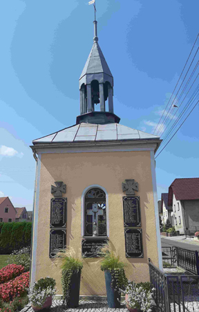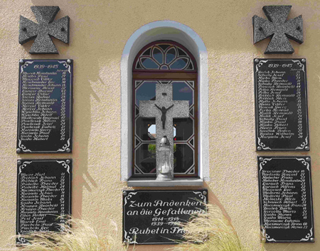 Gedenktafeln für die Gefallenen des 2. Weltkriegs an der Außenwand der Kapelle in der Ortsmitte.