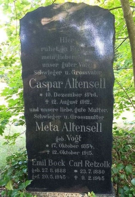 Granatsplitterverletzung; Prokurist; Ehemann von Martha Bock, geb. Altensell (geb. 1892) |