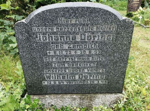 Zum Gedenken unseren lieben Vaters… verschollen; Fleischermeister; Ehemann von Johanna Döring, geb. Zampich (1872-1953) |
