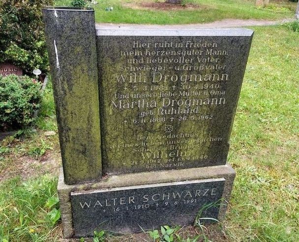 Dem Gedächtnis meines lieben, unvergeßlichen Sohnes u. Bruders…; Sohn von Willi Drogmann (1881-1940) und Martha Drogmann, geb. Ruhland (1888-1962); Kriegsgräberstätte Narvik: Block 8 Reihe C19 Grab 25 |