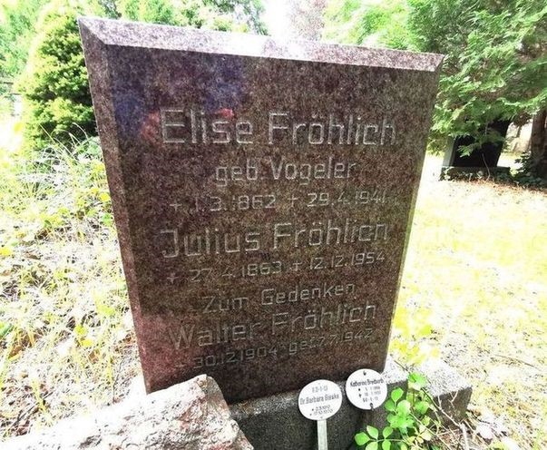 Zum Gedenken; Arzt; Sohn von Julius Fröhlich (1863-1954) und Elise Fröhlich, geb. Vogeler (1862-1941) |