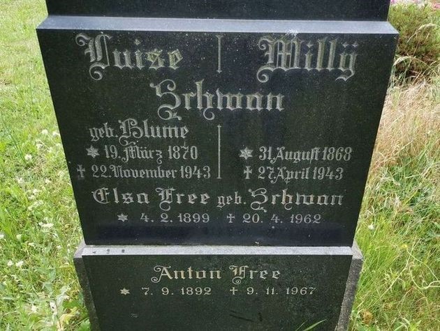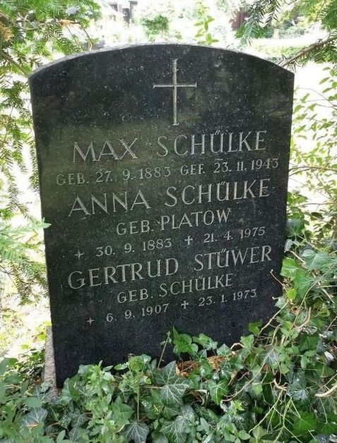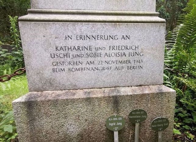Ehefrau von Willy Schwan (1868-1943); Fabrikbesitzerin; Verschüttung durch Feindeinwirkung; Kriegsgräberstätte Berlin-Kreuzb., Alter Luisenstädt Kirchhof: Block K Grab 43 |