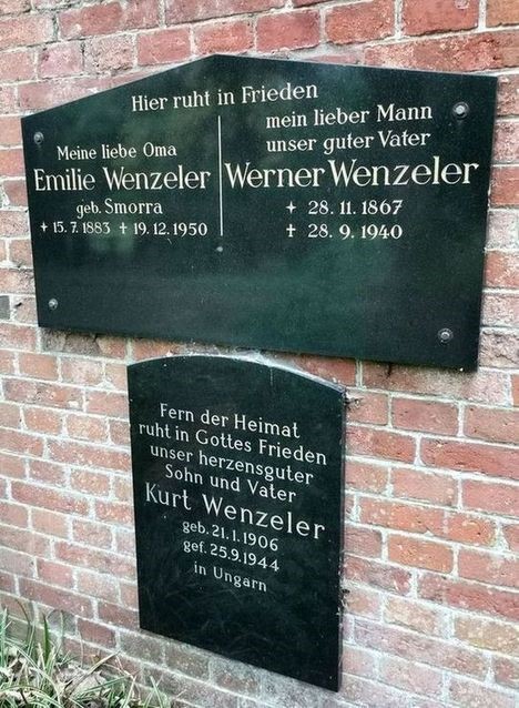 Kaufmann; Fern der Heimat ruht in Gottes Frieden unser herzensguter Sohn und Vater…; Grab noch in Ushgorod – Ukraine; Sohn von Werner Wenzeler (1867-1940) und Emilie Wenzeler, geb. Smorra (1883-1950) |